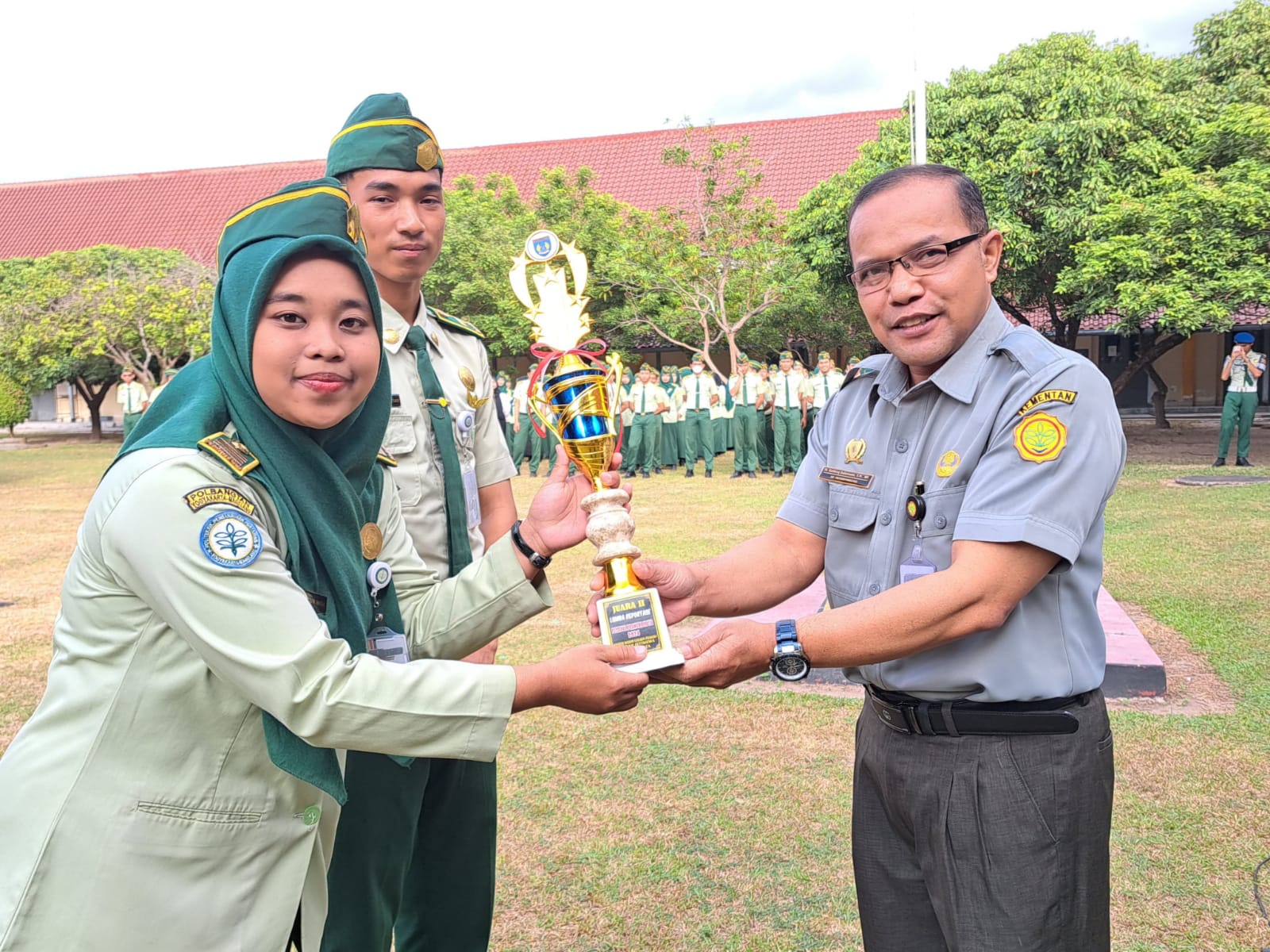 Direktur Polbangtan Yogyakarta Magelang, Bambang Sudarmanto, turut mengapresiasi langsung saat apel pagi bersama karyawan dan mahasiswa.