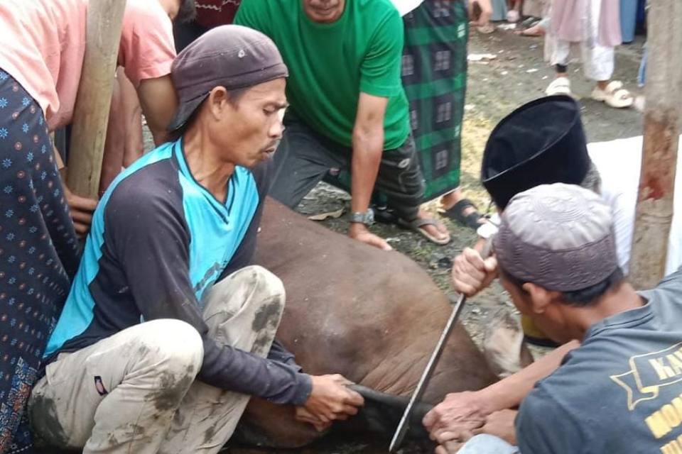 “Penyaluran Program Paket Pangan Bergizi berbarengan dengan momentum Idul Adha, semoga 5 ekor sapi yang dibagikan bisa membantu kebutuhan pangan masyarakat sekitar,” tegasnya.