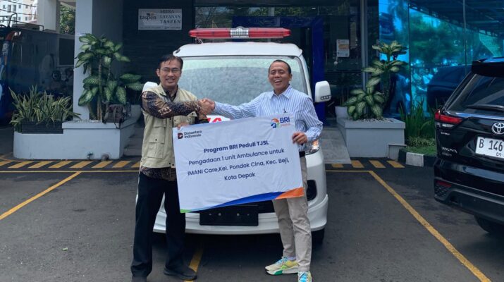 PEWARTANEWS.COM, DEPOK – Bank Rakyat Indonesia (BRI) Kantor Cabang (KC) Depok menyerahkan bantuan Ambulance untuk Yayasan IMANI Care yang berada di Kelurahan Pondok Cina,